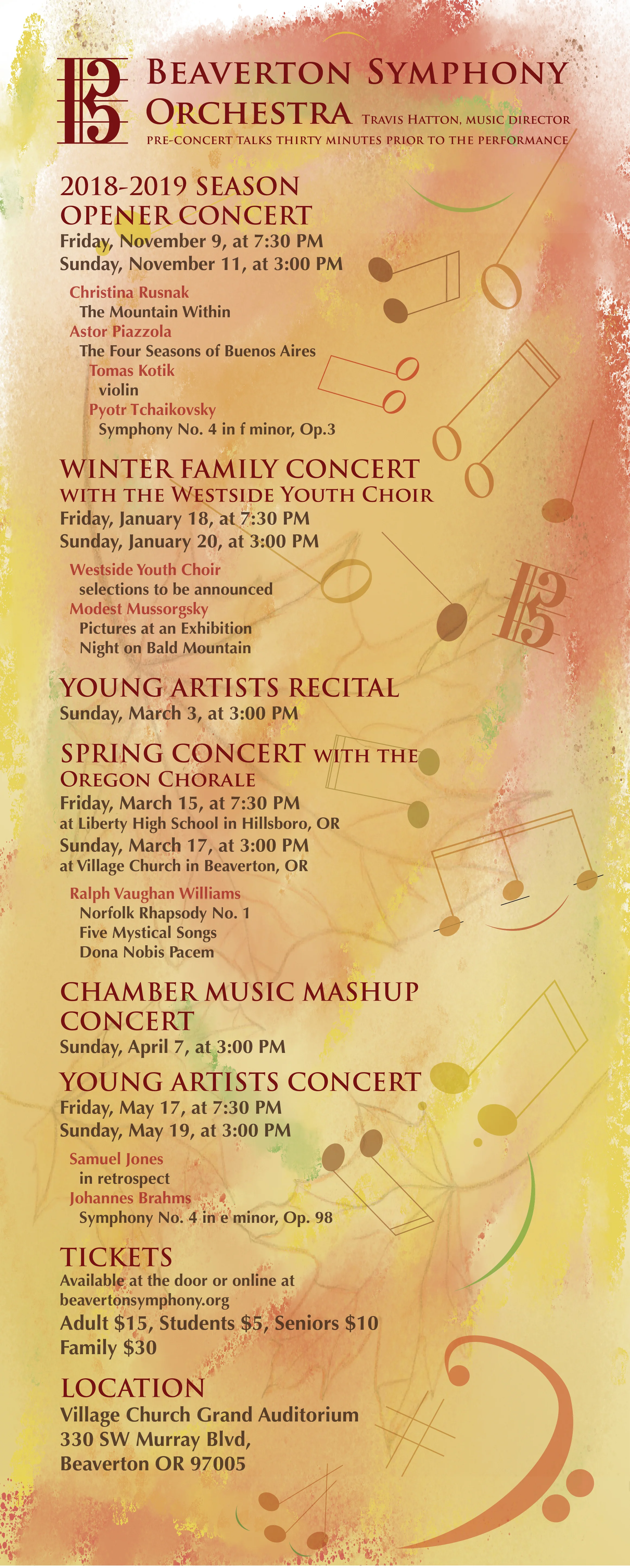 From our little competition in our class the BSO organization pick my poster to use for their Fall Banner. So, I got the dimensions for the Banner and scaled my poster to fit with some design changes. With a little help from my teacher Bob Bredemeier on some of the Typography on the Banner, we were able to crate this Banner in its entirety. BSO ended up using this Banner in their Fall concerts.